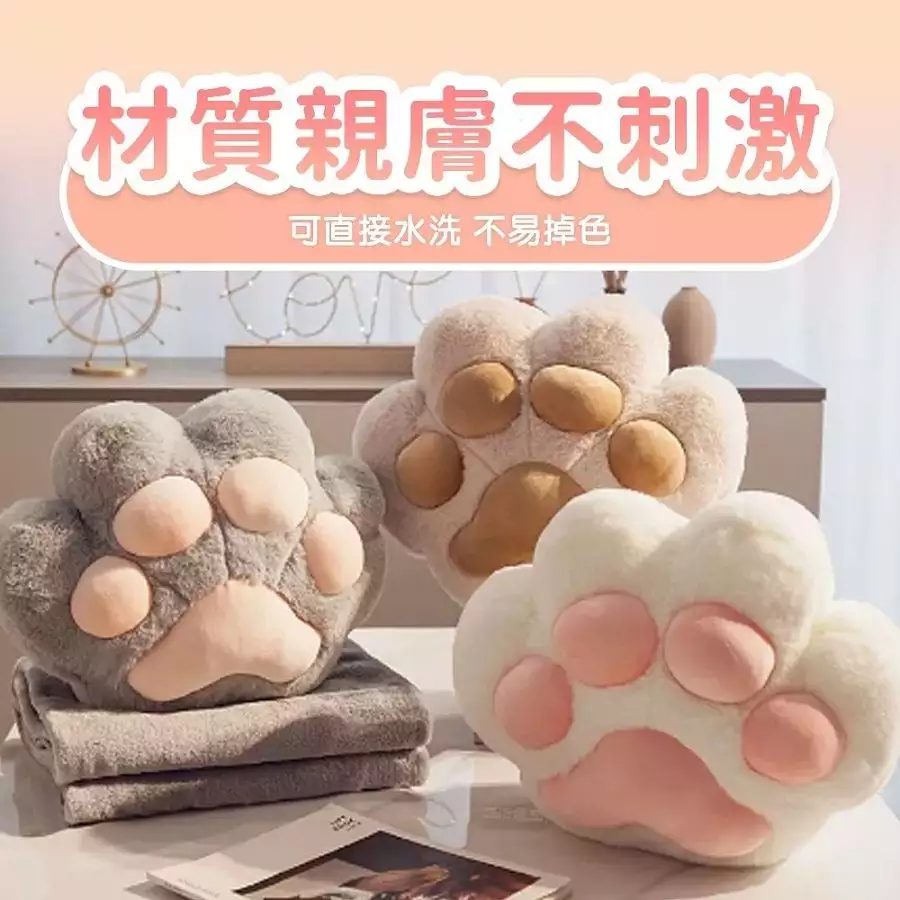 灰色-毛絨+PP棉40cm X35cm(貓爪抱枕+毛毯)